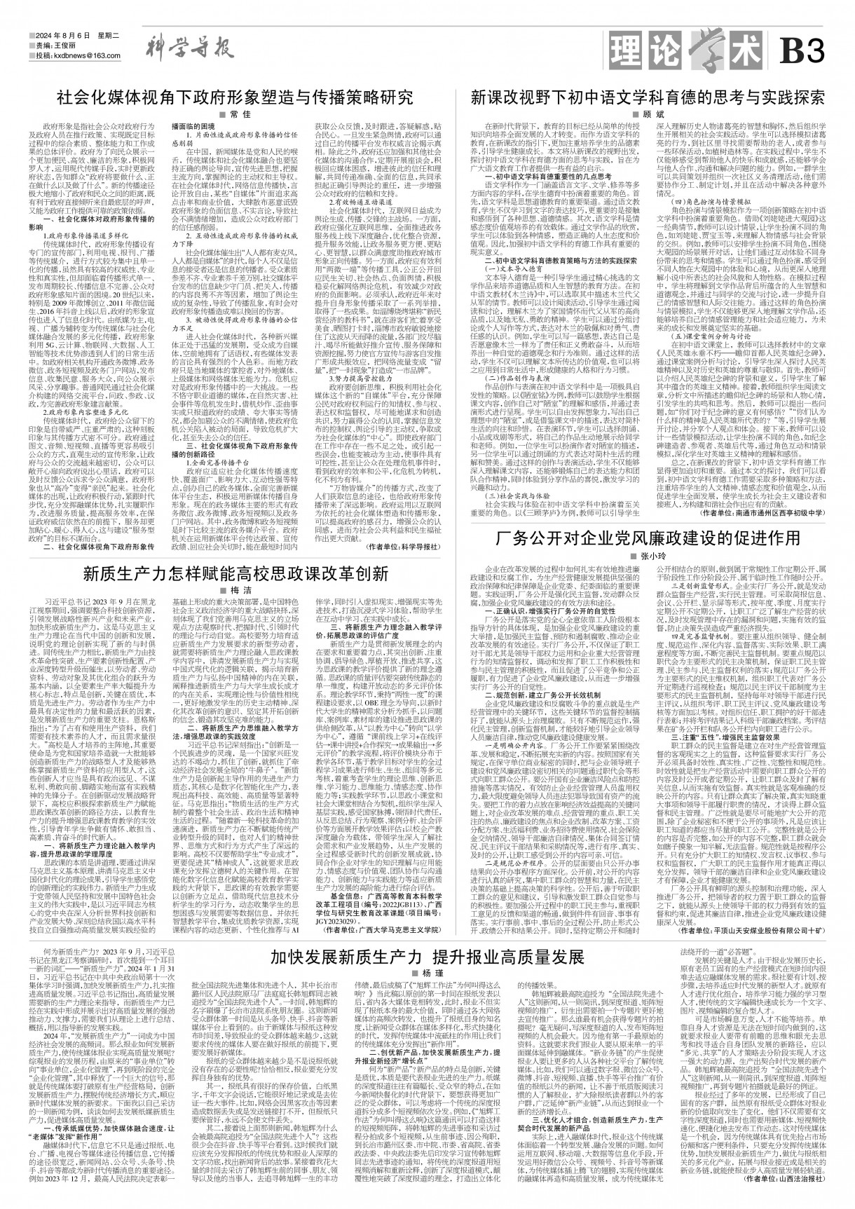 《科学导报》2024年8月6日版面速览-ag官网