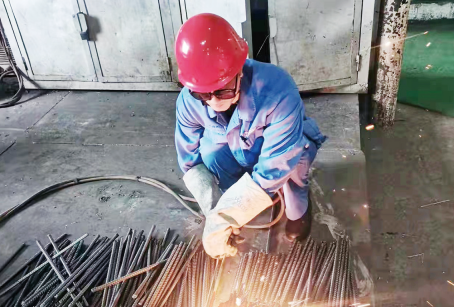戴着红色的安全帽,身着蓝色工服,清瘦的脸庞,一丝不苟的眼神,认真研究完图纸,又开始对材料进行测量,对于记者的走近,似乎没有丝毫察觉。记者见赵晓旋将焊条末端对准焊件,手腕下弯,焊条在焊件上如蜻蜓点水一般,又迅速将焊条提起,一道刺眼的电弧让记者有些不知所措,但赵晓旋的手却稳如泰山,他手腕平放,使电弧保持稳定燃烧,焊花飞溅,不一会儿,焊活完美落幕,表面饱满的鱼鳞纹让记者不禁叫好……3月15日,记者见到了刚刚荣获“最美时代新人”荣誉赵晓旋的一手焊工绝活。
